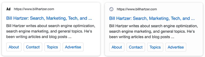 Durante varios años Google ha estado probando varias opciones de colocación de los elementos de las SERPs, la URL, el titular, favicon, el indicador de publicidad.