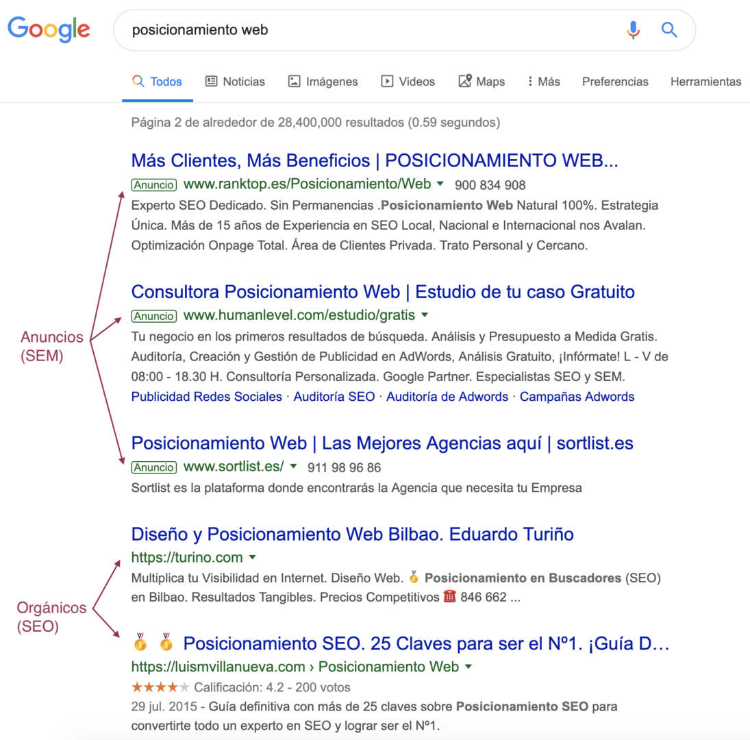 Distinguir un anuncio y un resultado orgánico de las SERPS